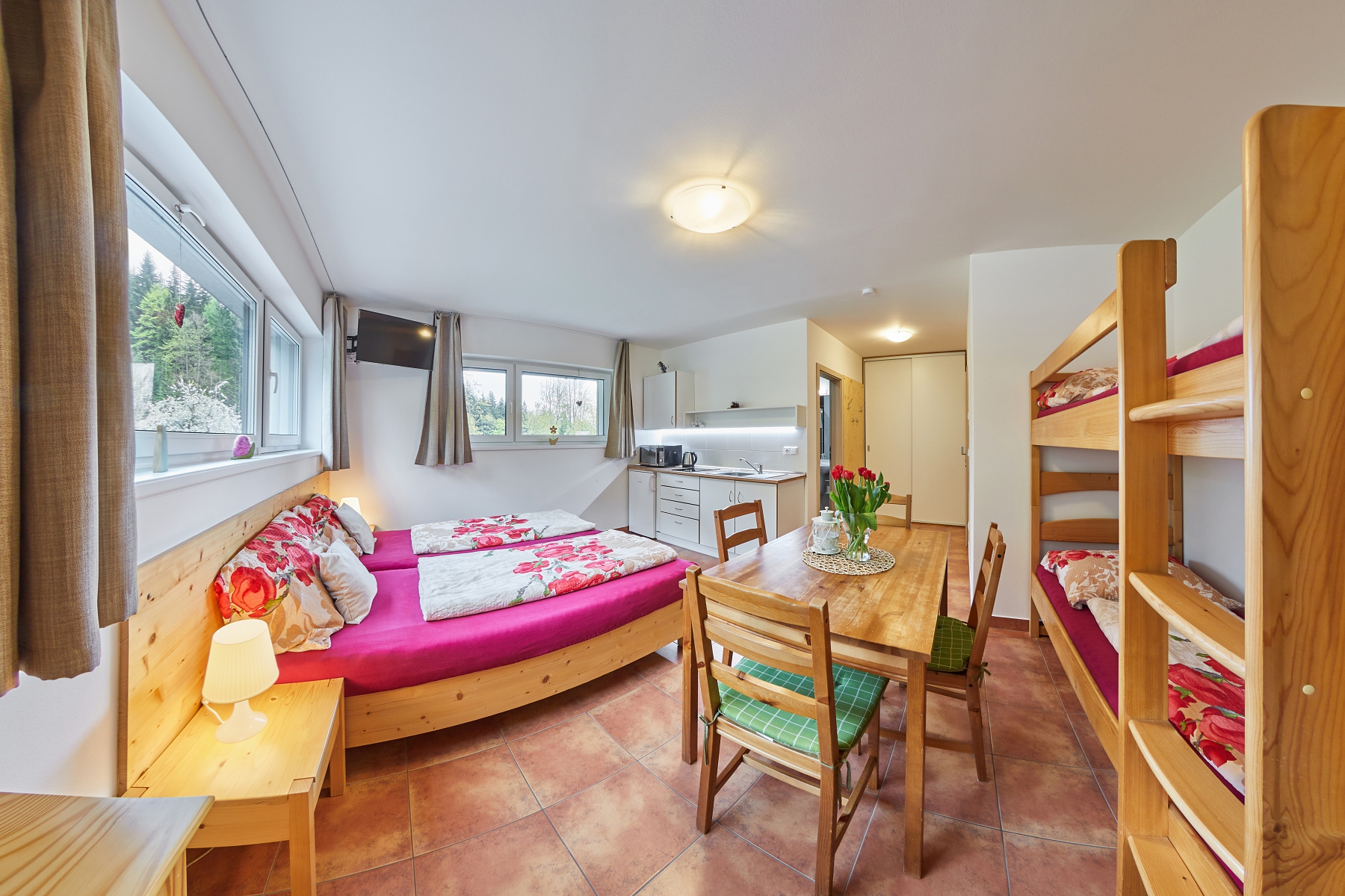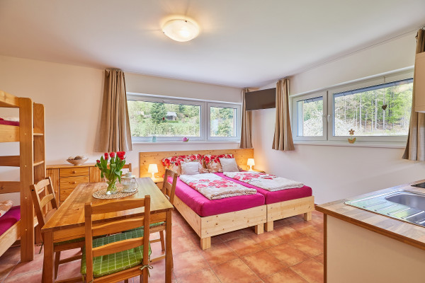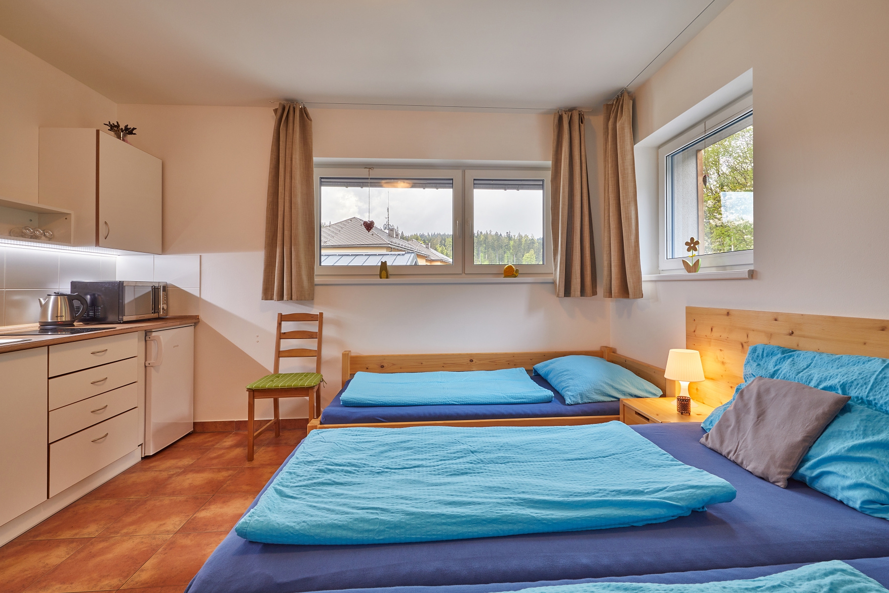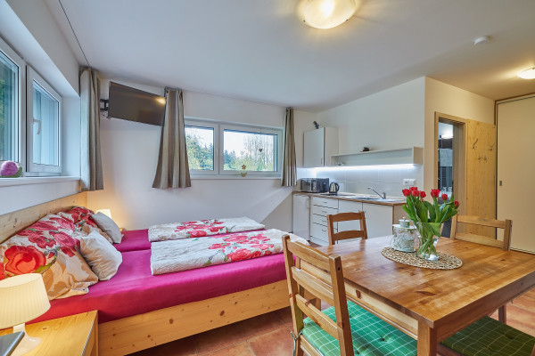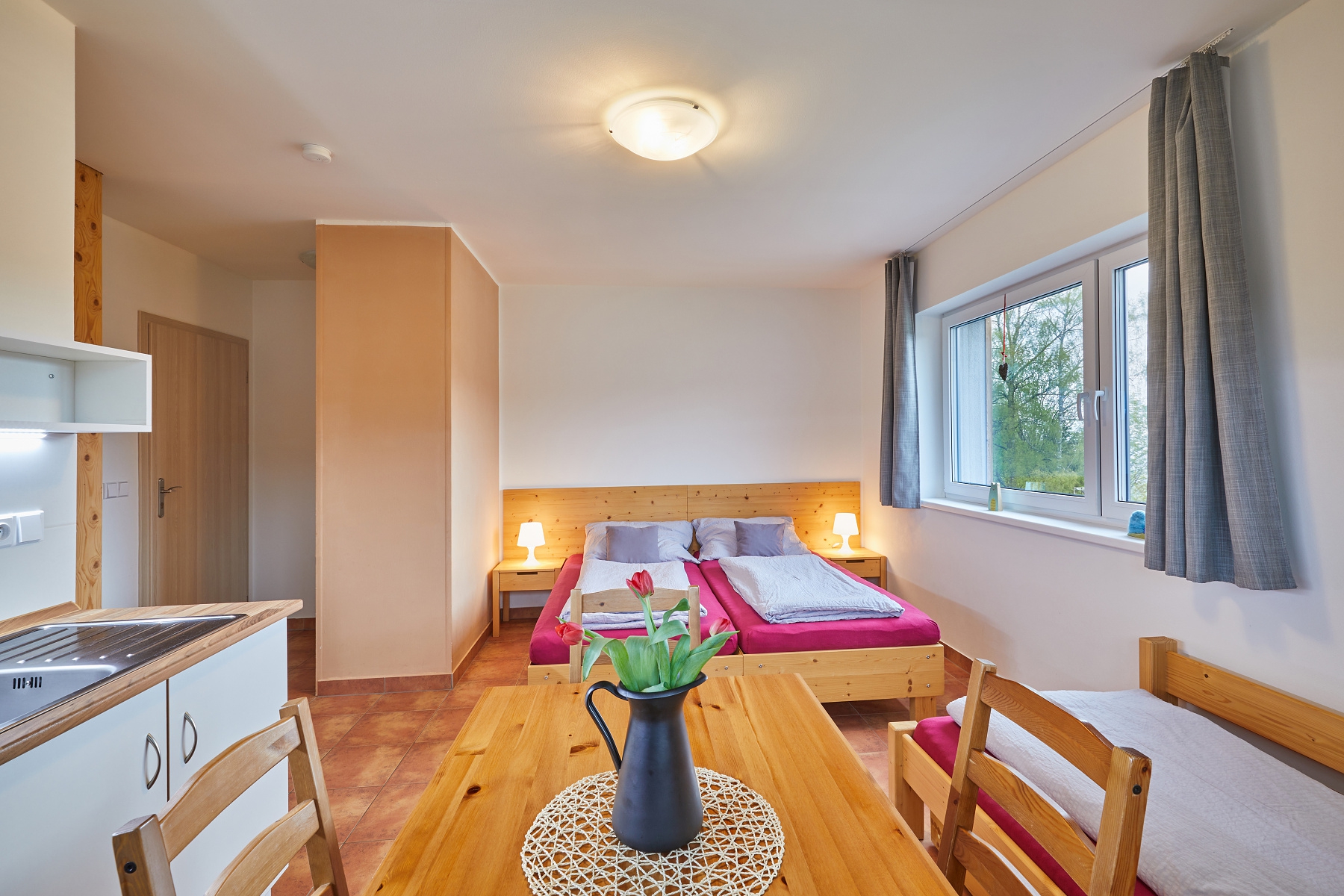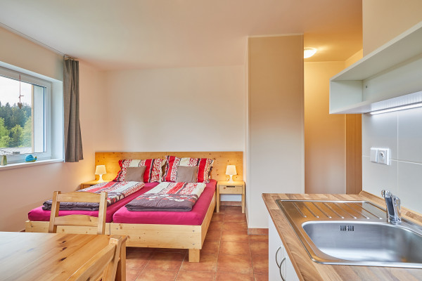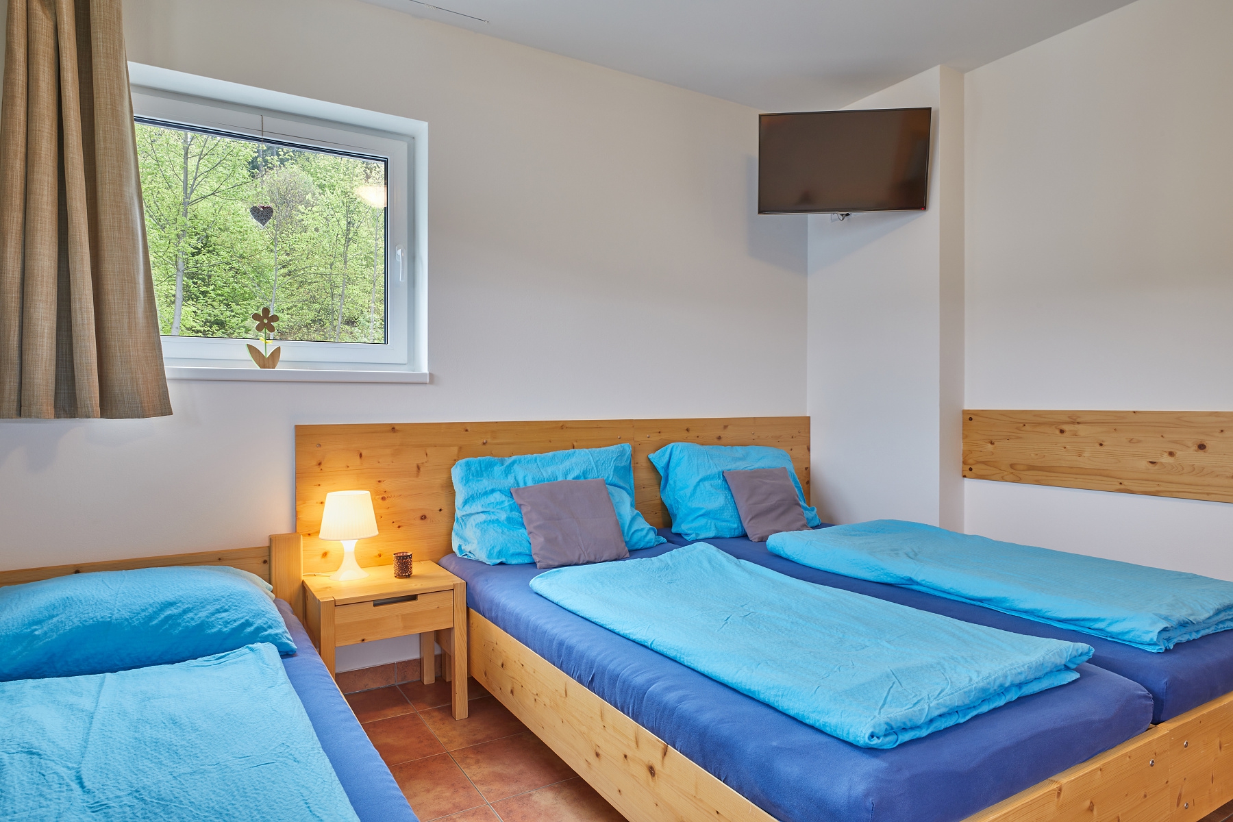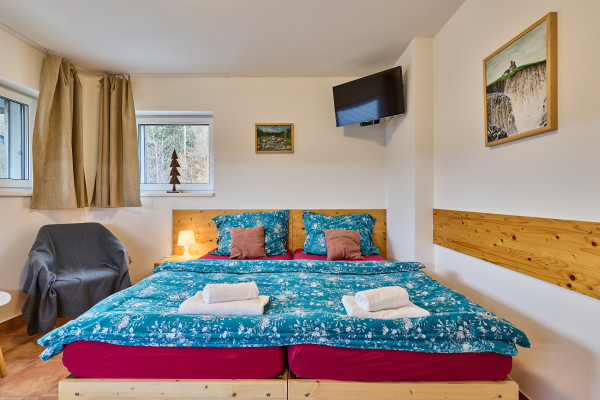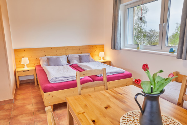 - Lůžka: Jedno manželské lůžko (tvořené dvěma lůžky u sebe) a jedna pohodlná patrová postel.