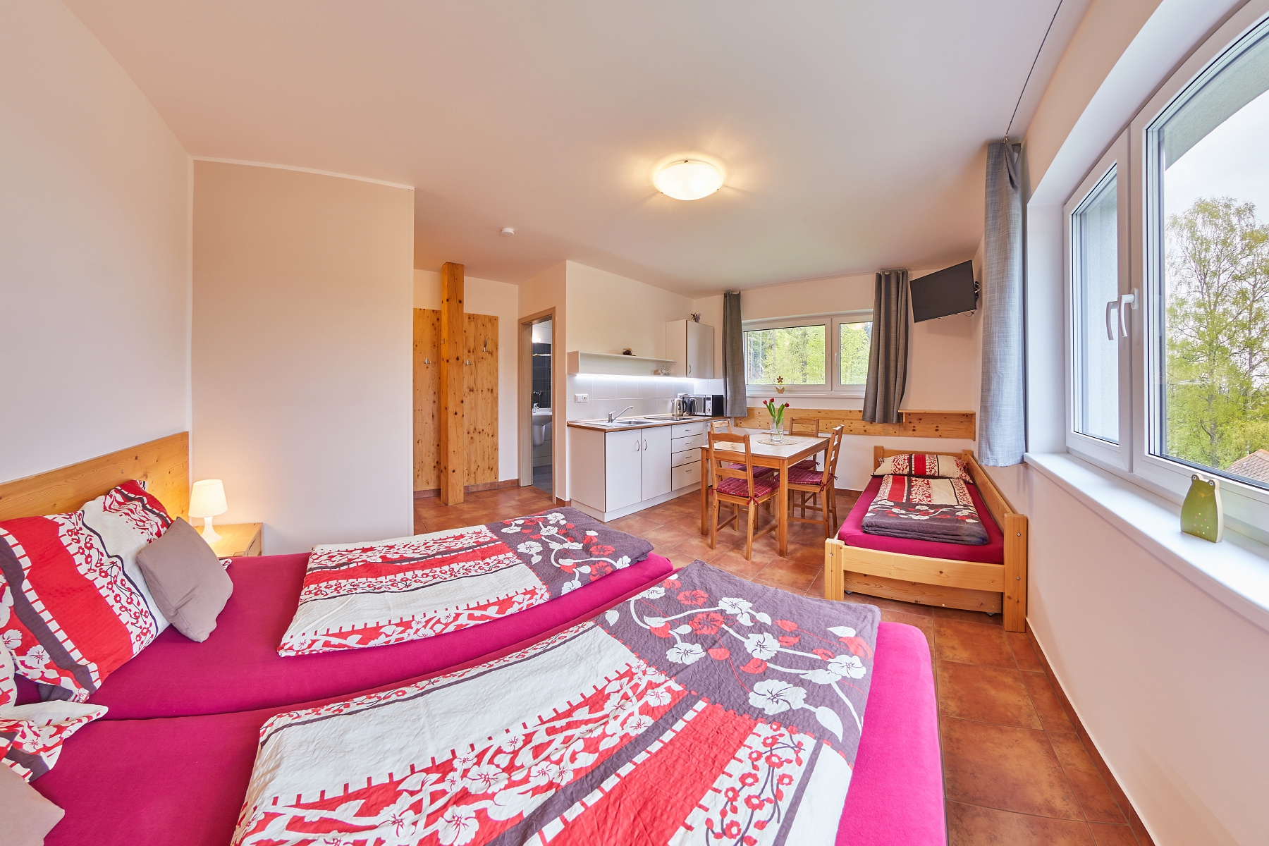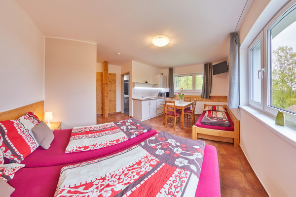 Prostorný pokoj ideální pro rodiny nebo menší skupinu přátel.
