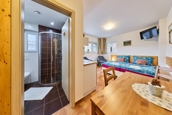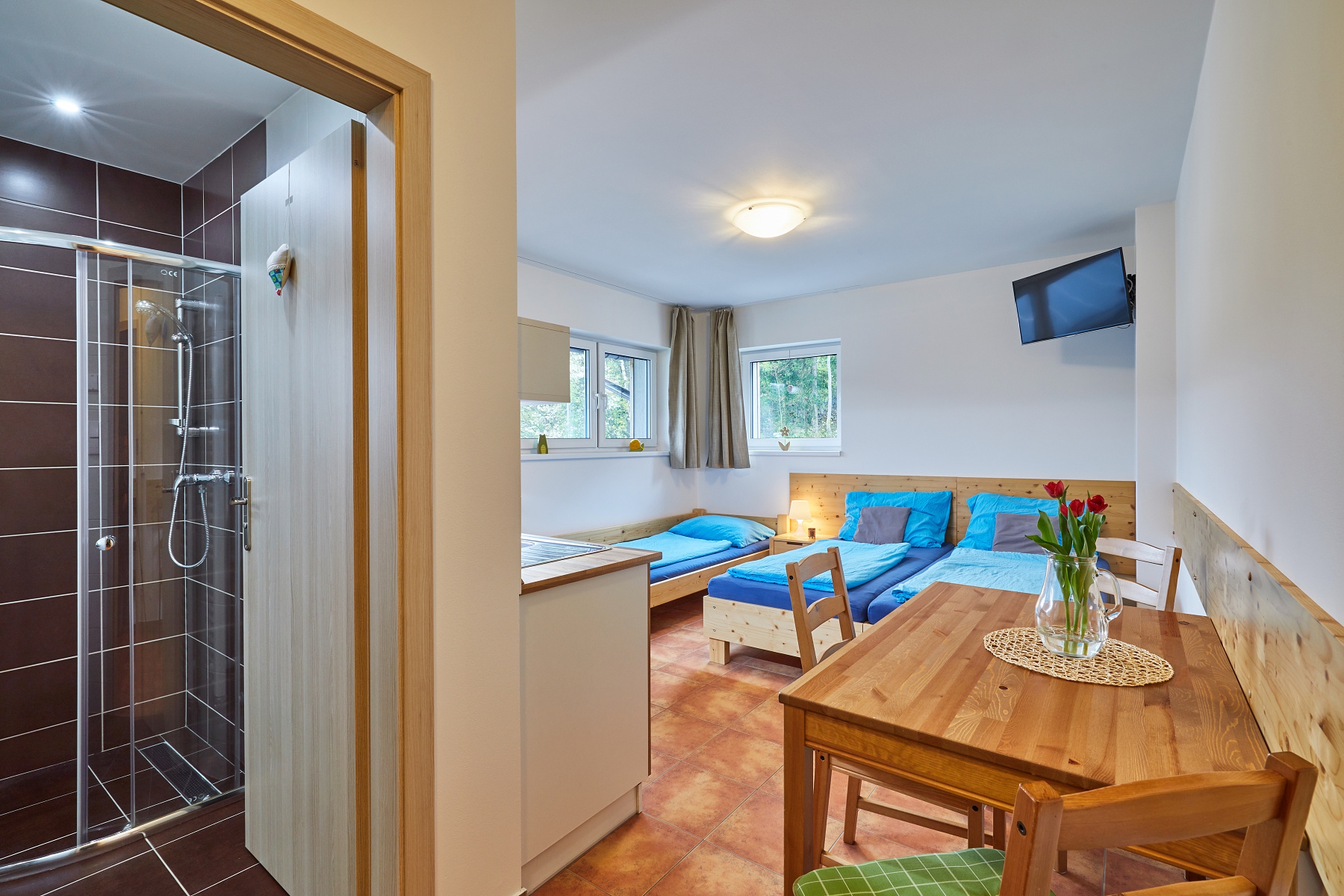 - Sociální zařízení: Vlastní koupelna se sprchovým koutem.