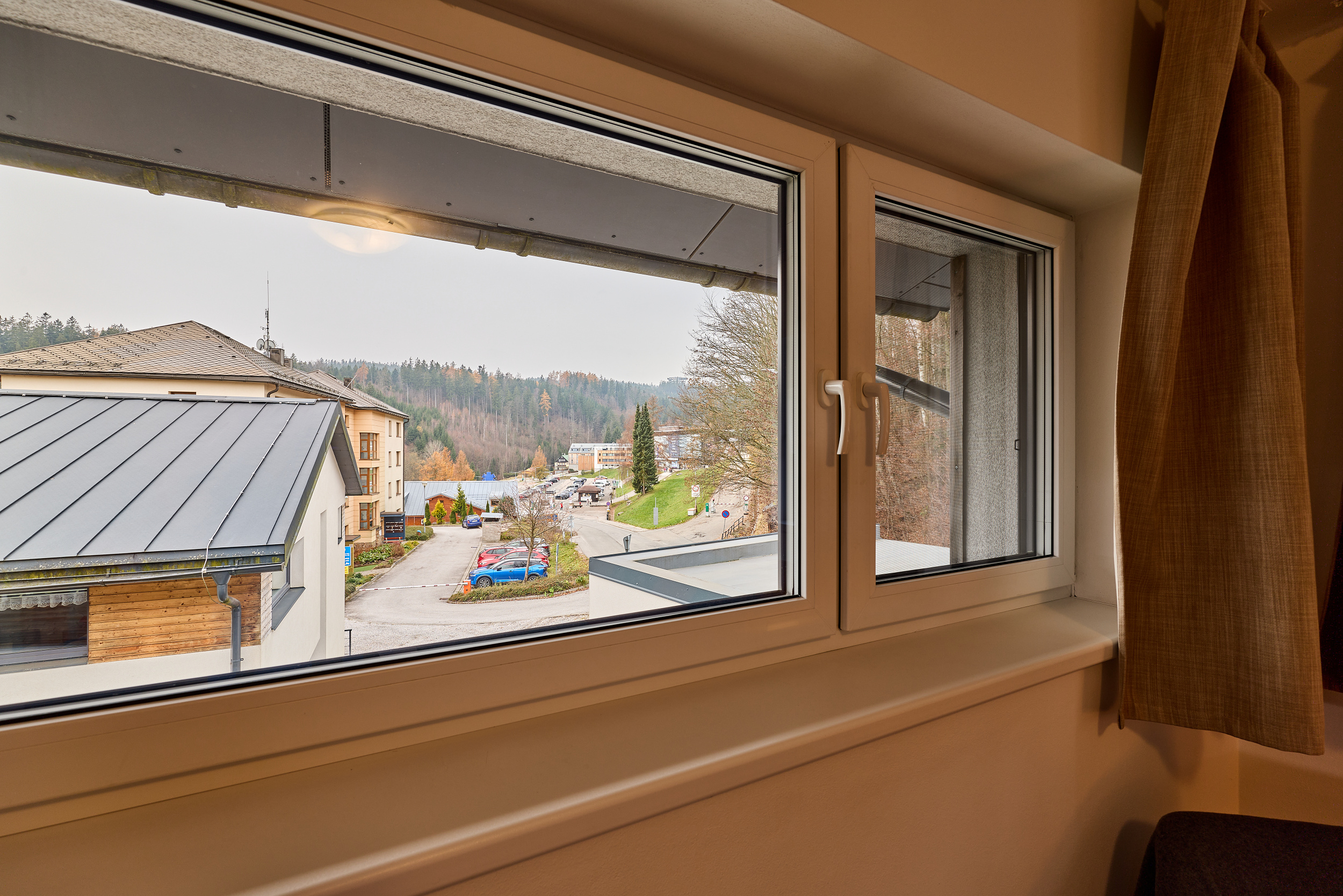 - Výhled: Pokoj nabízí uklidňující výhled na louku, kde můžete po ránu spatřit pasoucí se srnky.